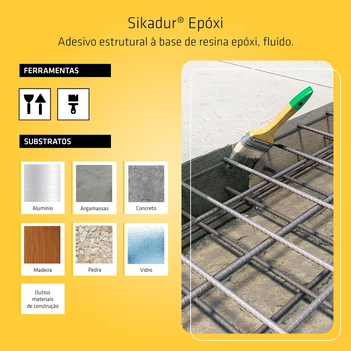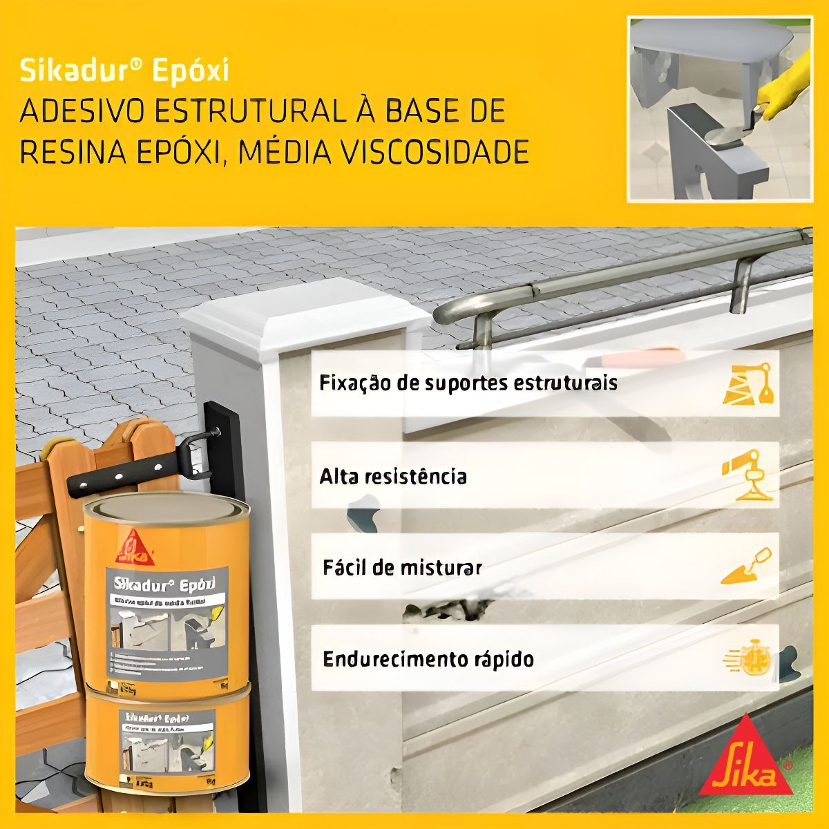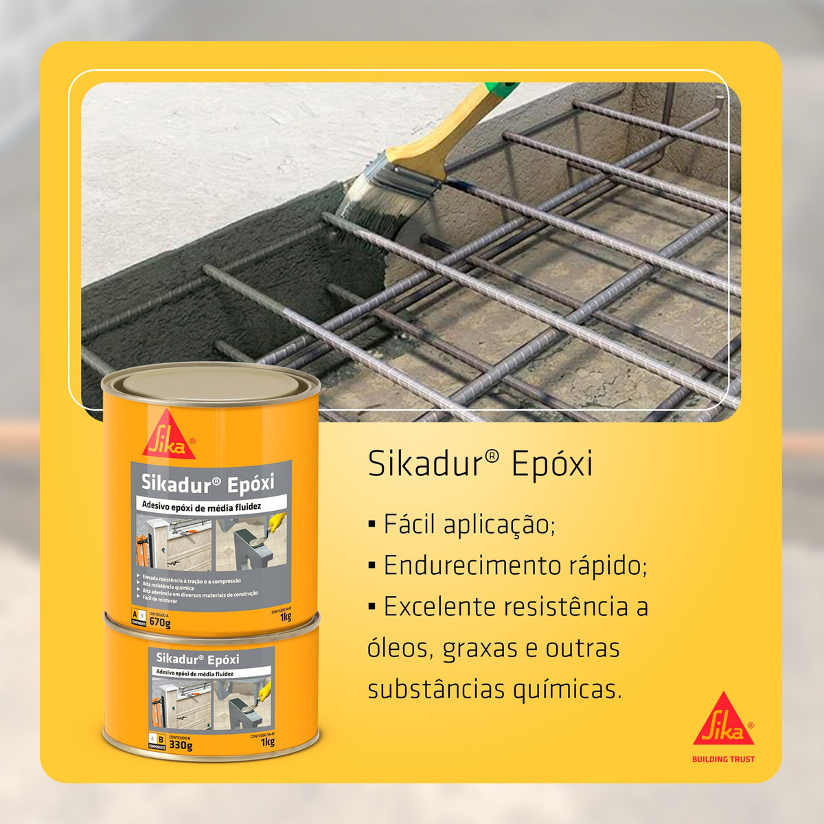 O Sikadur® Epóxi é um adesivo estrutural bi-componente de média viscosidade, desenvolvido para colagens de alto desempenho na construção civil e em ambientes industriais. Com resistência excepcional à tração, compressão e agentes químicos, é ideal para unir concreto, aço, madeira, cerâmica, mármore, entre outros materiais.